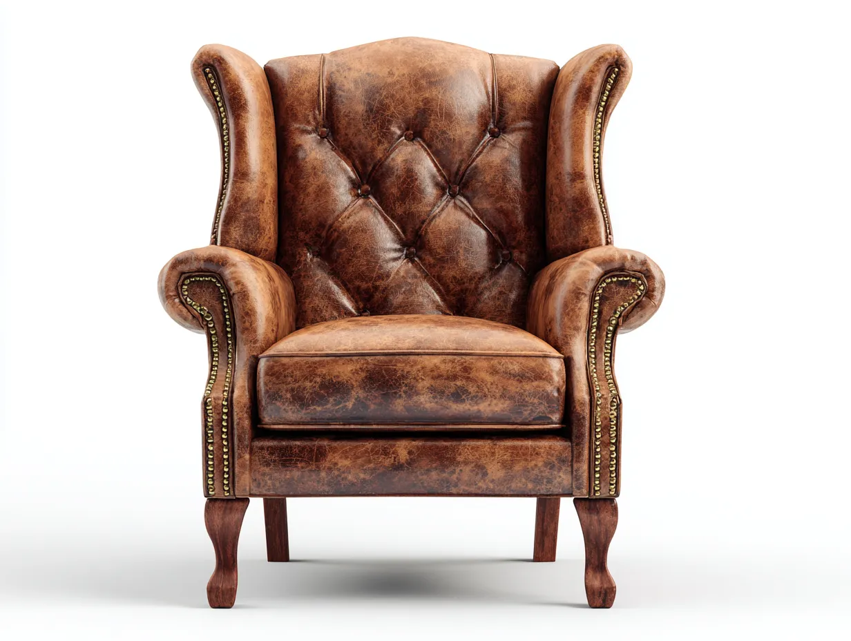 Sillón orejero tapizado efecto cuero con respaldo capitoné 90x95x112 cm - marrón envejecido - diseño clásico para salón