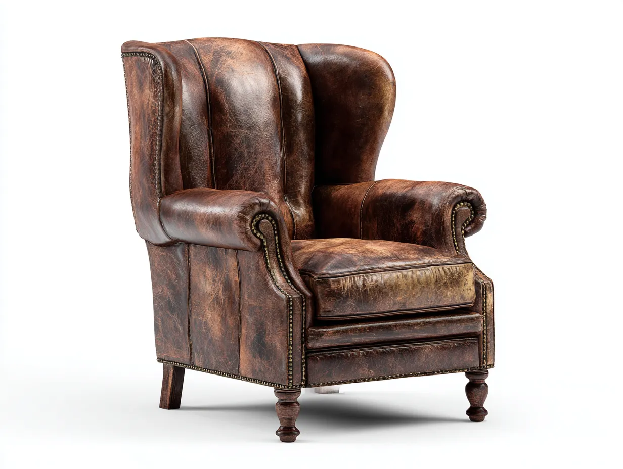 Tapizado en cuero con acabado en color marrón que muestra una textura natural y un aspecto envejecido decorativo. El acolchado equilibrado y las costuras visibles refuerzan el confort y la durabilidad, con una estructura interna estable para el uso diario.